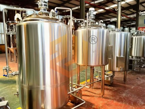 精釀啤酒設備使用的過濾槽與旋沉罐:采用上下兩層的設計方式,整體占地面積小,過濾槽采用銑制篩板,頂部采用異型人孔設計,側面配有出糟口,方形人孔門設計更有利于啤酒麥糟的清理工作,同時還配有出糟板。內部配有耕刀裝置,用于疏松麥糟層以及出糟使用。
